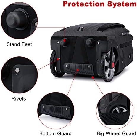 Rolling Backpack, Travel Backpack with Wheels, Rolling Backpack for Women Men, Carry on Luggage with Rolling Laptop Backpack for Travel Work, Fit 17.3 Inch Notebook Men Women (Black)